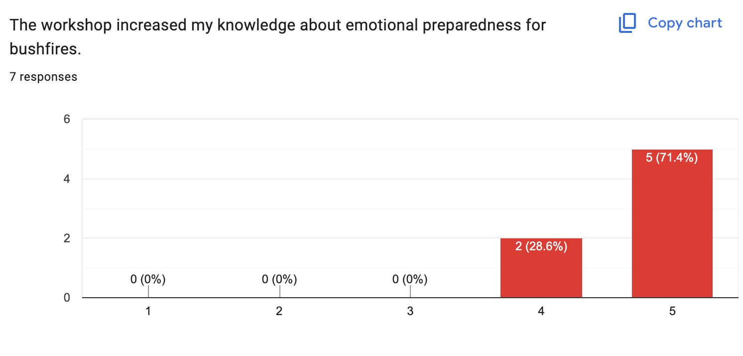 As one respondent put it: “Anyone living in a bushfire area needs this workshop.”
