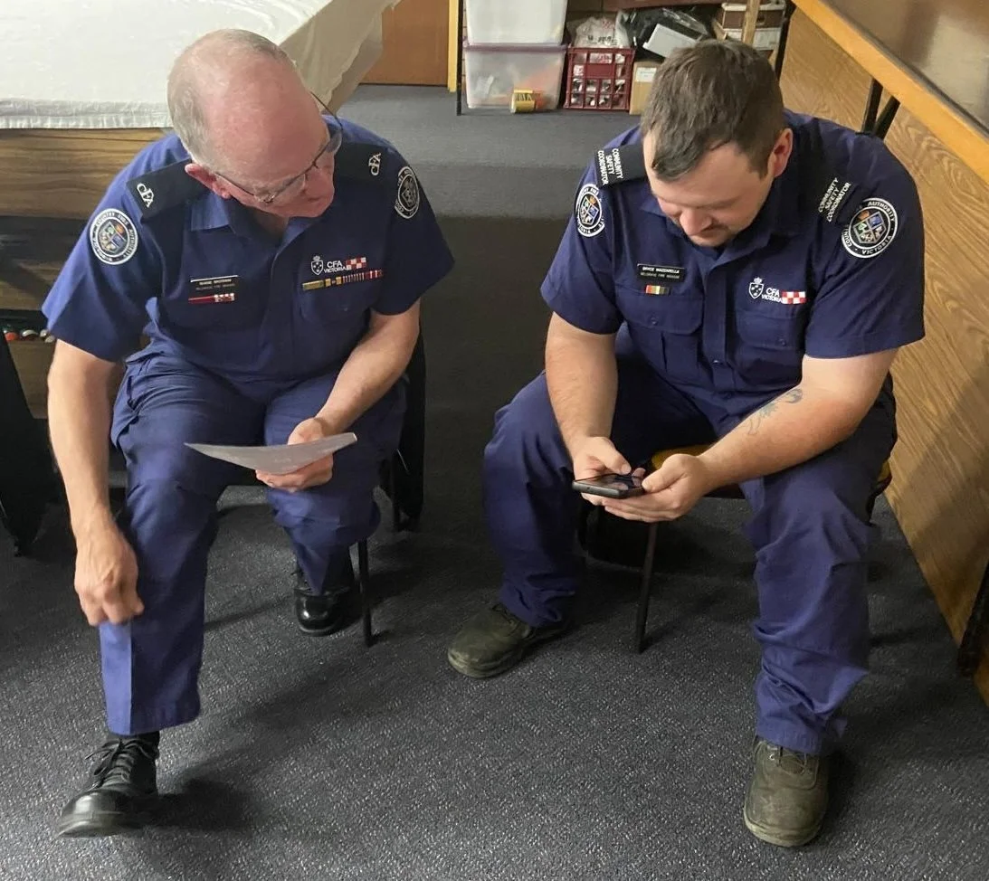 A big thanks to Belinda and Bryce for their fantastic support organising the session. Thanks also to Shane and David from the Belgrave CFA for their warm hosting of the Immersive Bushfire Experience Team.